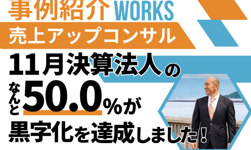 当事務所の11月決算法人の申告が終わりました。 黒字化できた法人の割合は、50.0%にのぼりました。