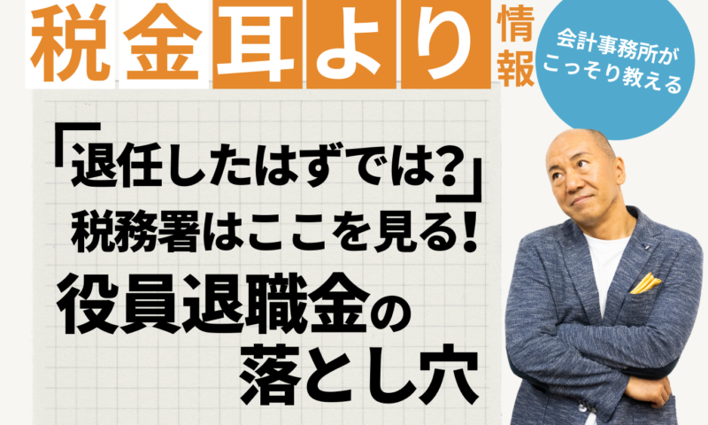 代表取締役から会長や顧問へ退いた際、多額の退職金を支払うケースは多いですが、税務調査では常に「本当に引退したのか?」と厳しく追求されます。